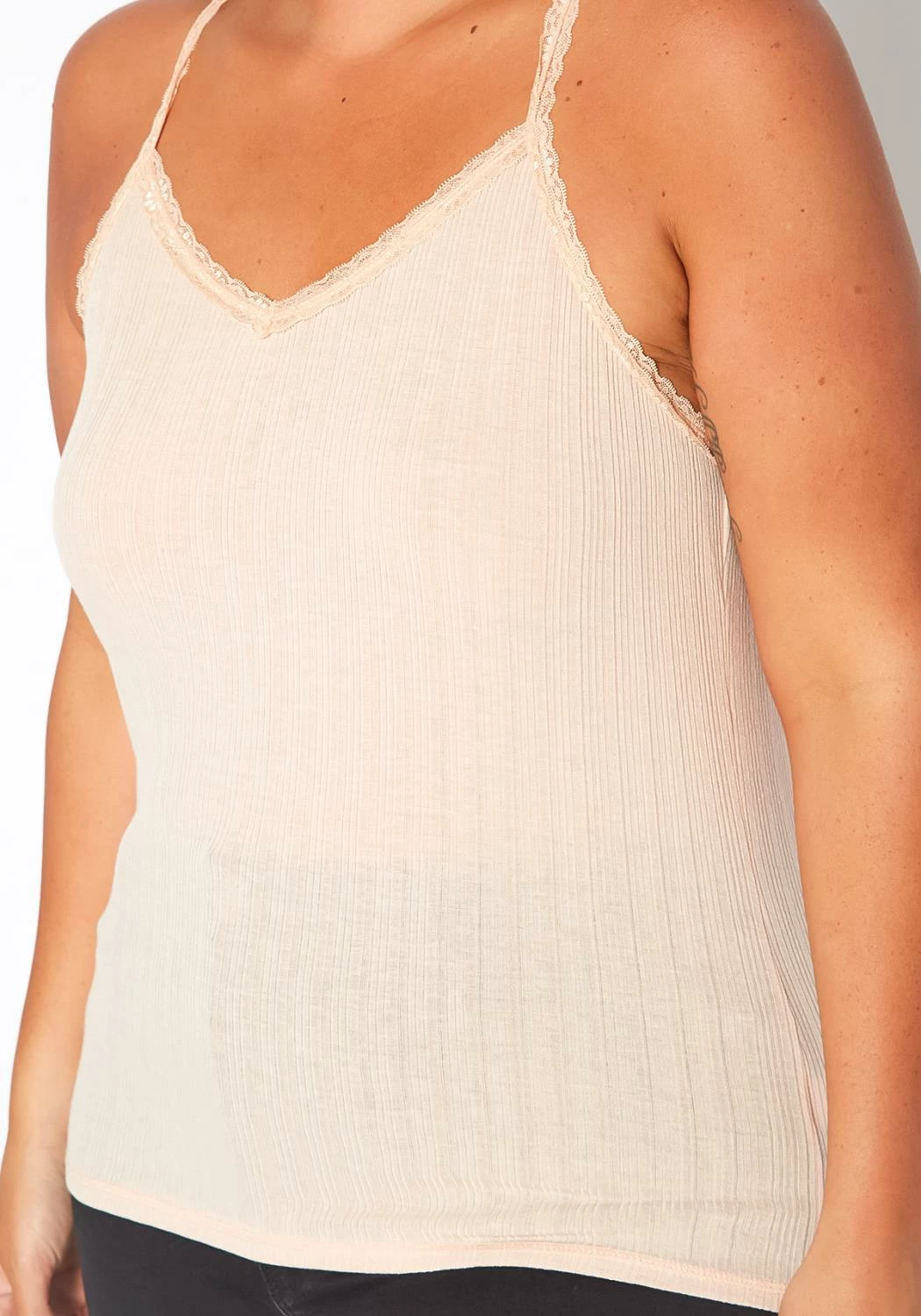 Must have basic top for plus size women which features lace trim details, v-neck style and comfy ribbed knit material.