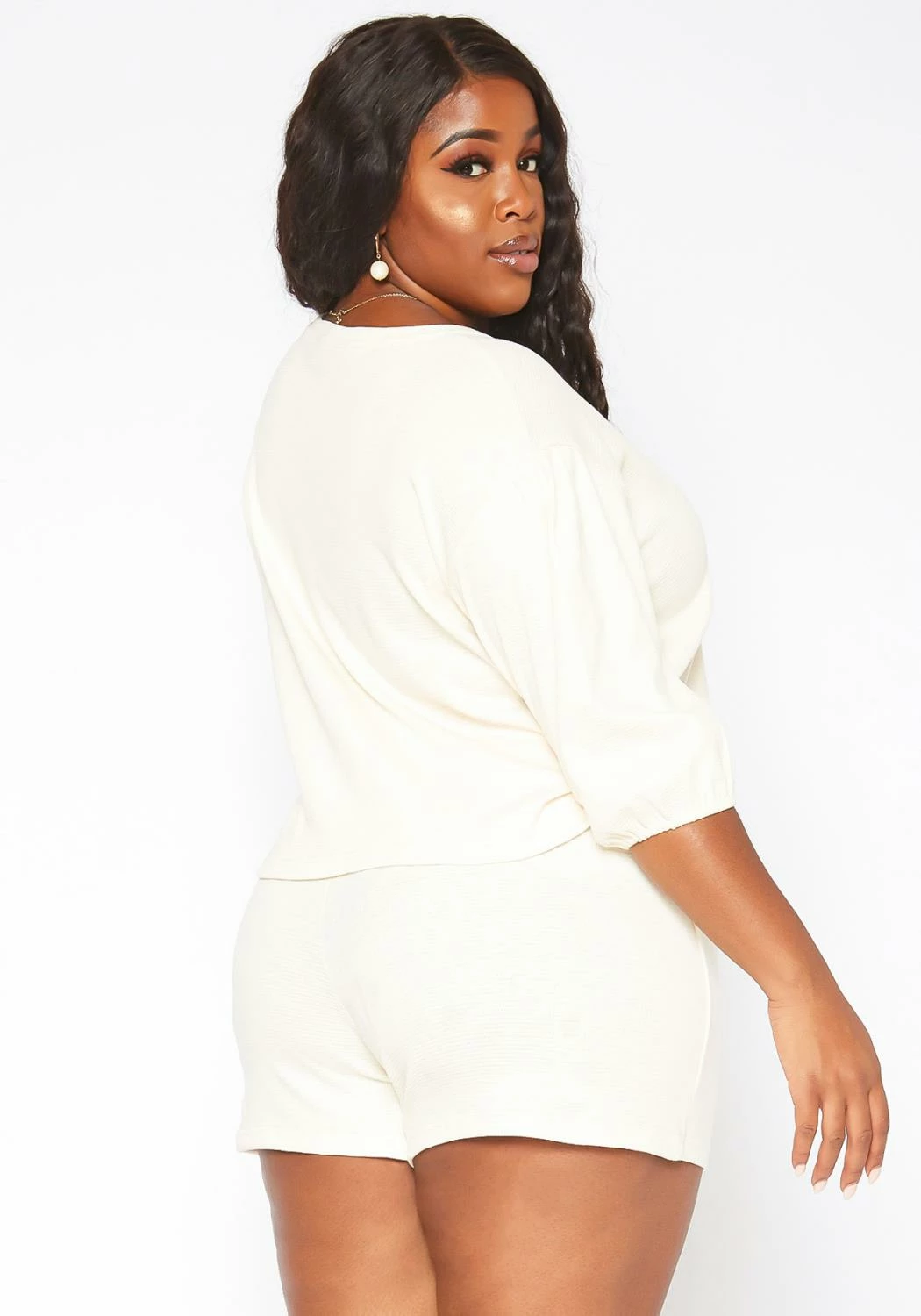 Comfy casual plus size women’s lounge shorts in ribbed knit material, mid rise fit and relaxed fit. Make it a set with the matching top here : 2017990