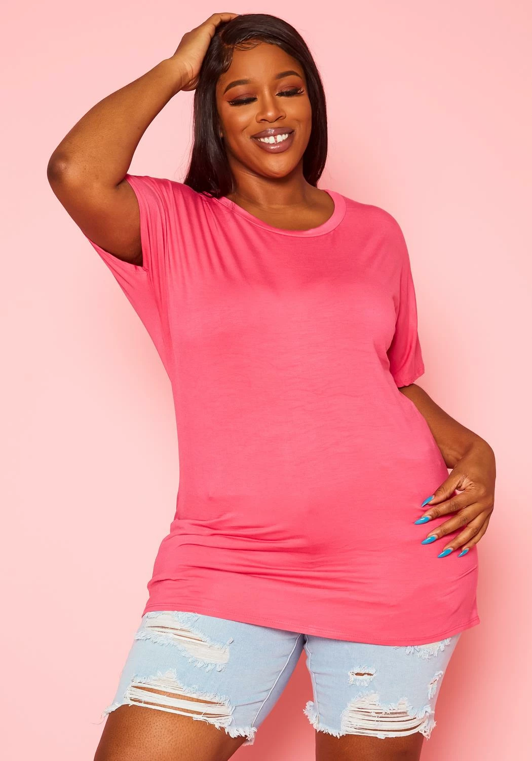 Casual plus size women’s t-shirt , round-neck style and short sleeves.