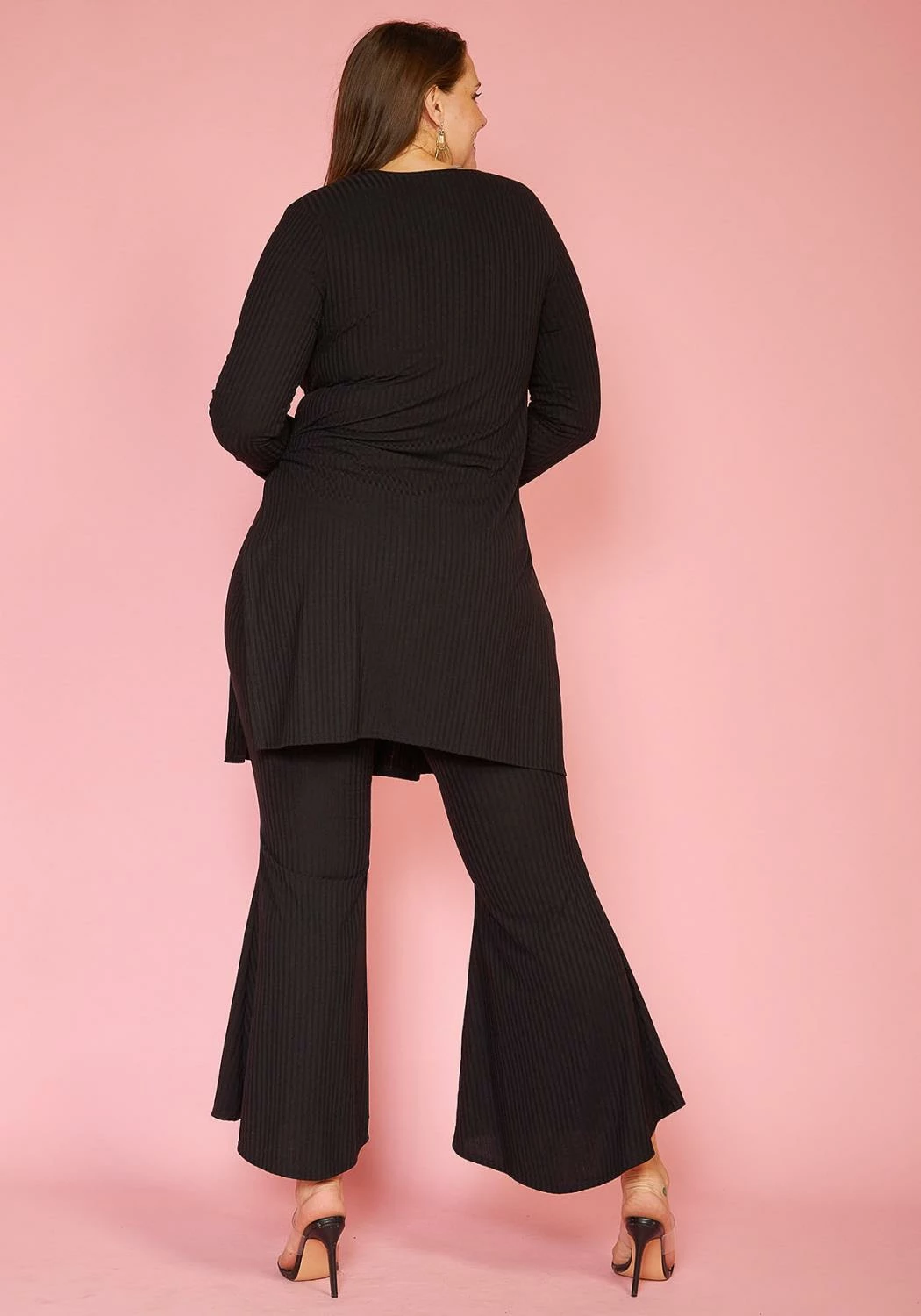 Open front cardigan and its matching high waist pants. Easily pair your favorite top with this set.