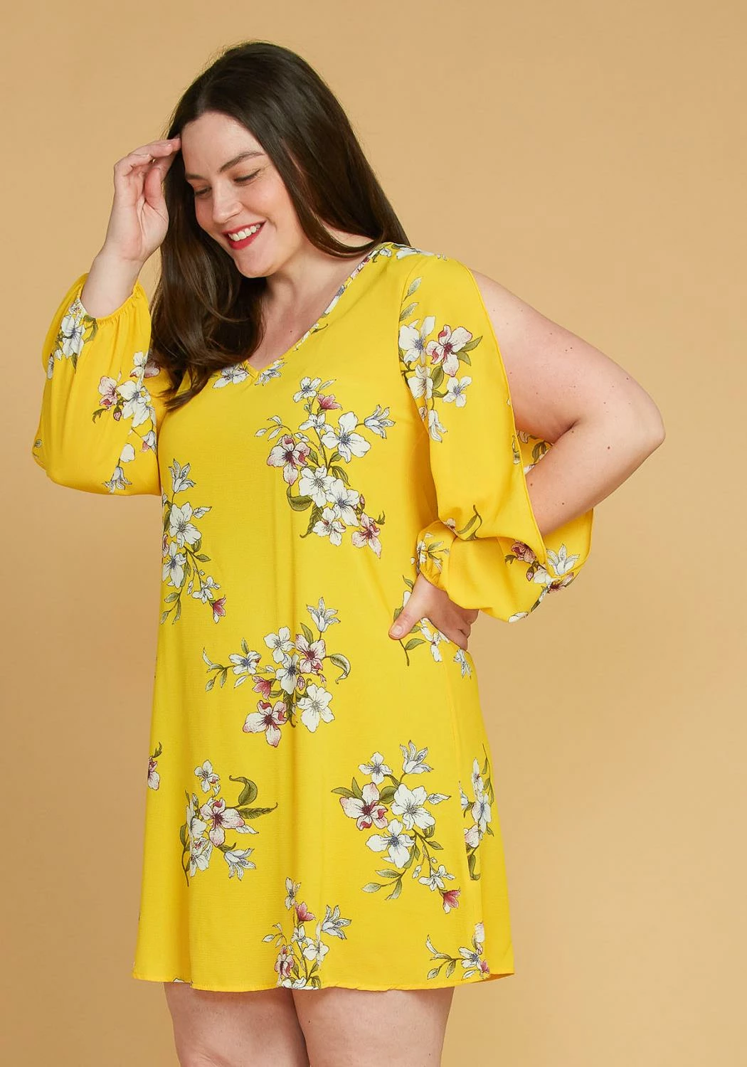 Asoph Plus Size Slit Sleeve Floral Tunic Dress
