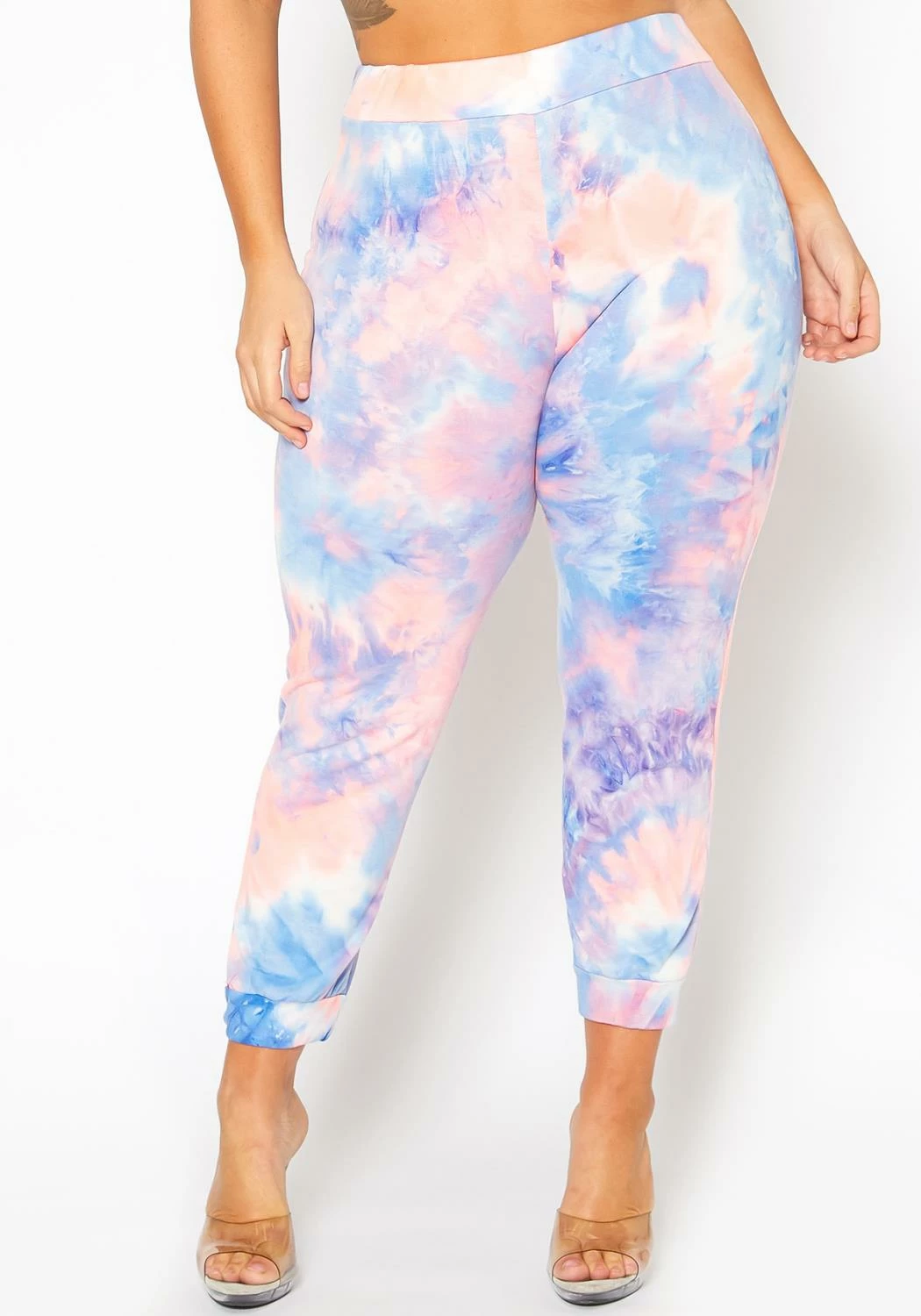 The perfect lounge pants with a sweet style. Features colorful tie dye print, ankle cuff and mid rise style.