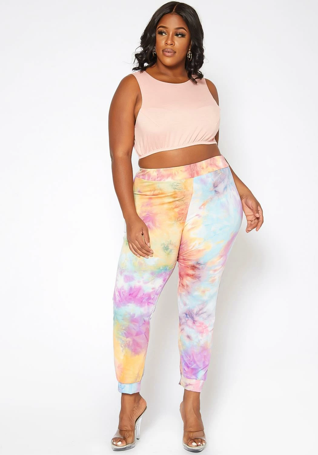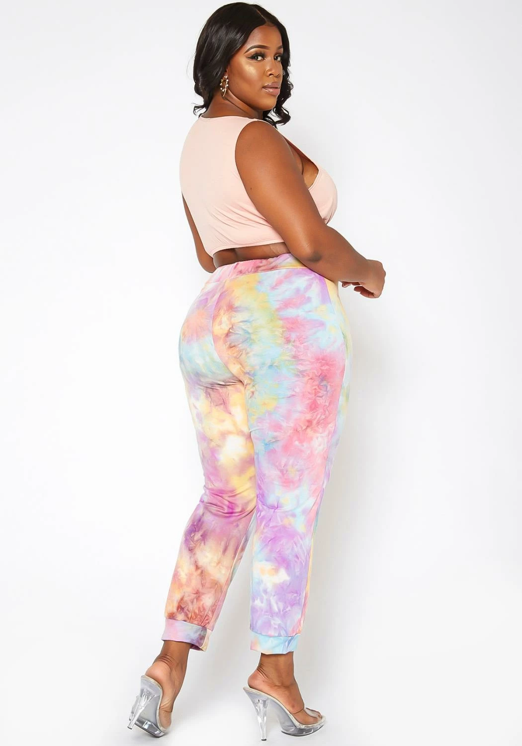 The perfect lounge pants with a sweet style. Features colorful tie dye print, ankle cuff and mid rise style.