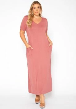Plus Size V-Neck Short Sleeve Maxi Dress With Pockets
