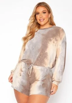 Plus Size Subtle Tie Dye Two Piece Set