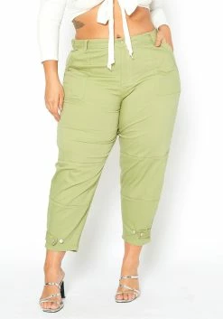 Asoph Plus Size Sage Green Utility Cargo Design Pants