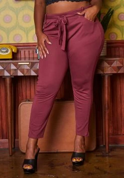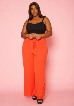 Plus Size High Waist Belted Pants