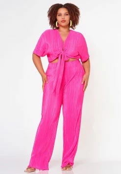 Plus Size Lavish CC Print Crop Top & Dress Pants Set