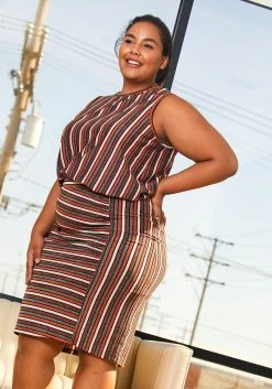 Asoph Plus Size Stripe Suspender Midi Skirt