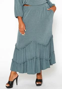 Asoph Plus Size Ruffle Trim Knit Maxi Skirt