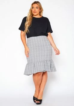 Plus Size Ribbed Knit Sweater & Bodycon Skirt Set