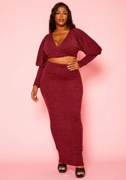Plus Size Ribbed Knit Crop Top & Skirt Set
