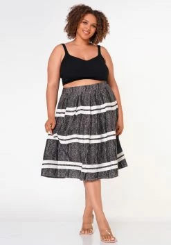 Plus Size Stripe Crop Top & Flare Maxi Skirt Set