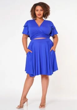 Plus Size Sincere Crop Blouse & Flare Maxi Skirt Set