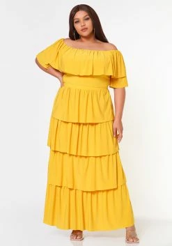 Plus Size Tiered Flare Maxi Skirt