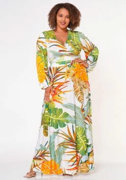 Plus Size Tie Front Surplice Top & Maxi Skirt Set