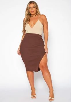 Plus Size High Waist Ribbed Midi Skirt