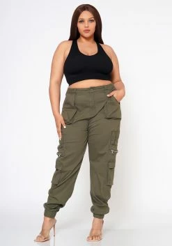 Plus Size Ankle Cuffed Utility Cargo Pants