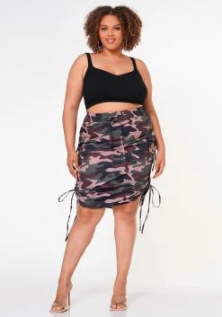 Plus Size Drawstring Hem High Waist Maxi Skirt