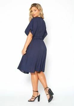 Asoph Plus Size Dolman Sleeve Linen Summer Dress