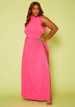 Plus Size Mock Neck Houndstooth Color Block Print Mini Dress