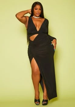 Plus Size Multi Color Pattern Long Sleeve Midi Dress