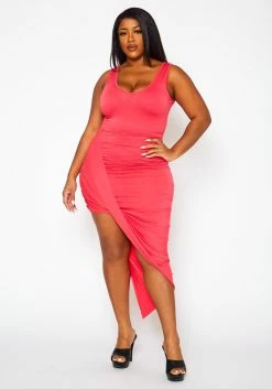 Plus Size Ruched Asymmetric Bodycon Dress