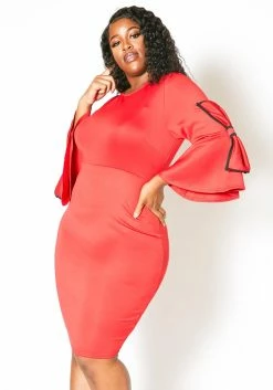 Asoph Plus Size Bow Sleeve Bodycon Party Dress