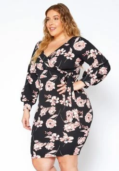 Asoph Plus Size Blush Flower Wrap Dress