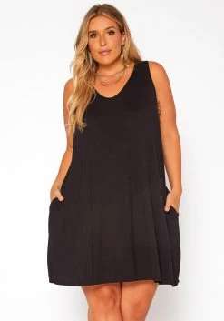 Asoph Plus Size Asymmetric Cut Fit & Flare Midi Dress