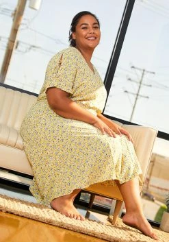 Pleione Plus Size Ruffle Empire Tie Waist Sun Dress