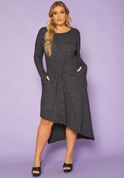 Plus Size Asymmetric Long Sleeve Midi Dress