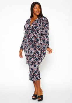 Plus Size Abstract Pattern Bodycon Midi Dress