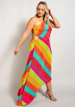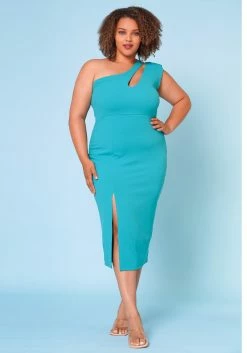 Plus Size Asymmetric One Sleeve Cocktail Midi Dress