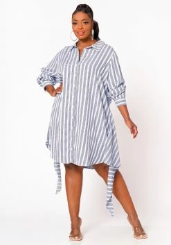 Pleione Plus Size Button Up Tunic Shirt Dress