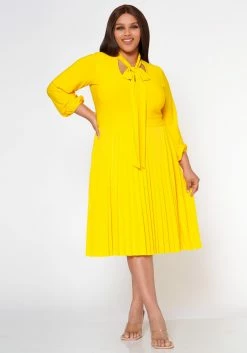 Plus Size Bow Collar Pleated Fit & Flare Dress