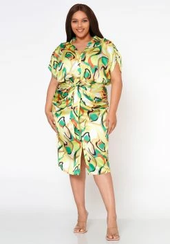 Nurode Plus Size Lace Trim Wrapped Shirt Dress