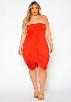 Plus Size Front Collar Tie Bodycon Midi Dress