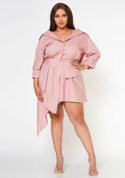 Plus Size Button Front Collar Neck Satin Mini Dress