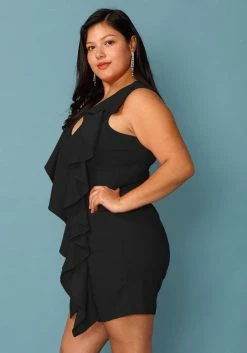 Plus Size V-Neck Ruffle Front Sleeveless Romper