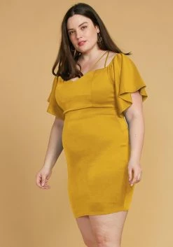 Plus Size Strappy Bell Sleeve Cocktail Dress