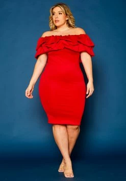 Plus Size Off Shoulder Ruffle Hem Dress