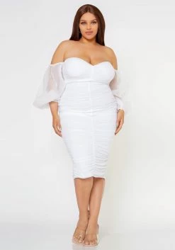 Plus Size Romantic Off Shoulder Ruched Midi Dress