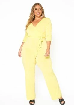 Asoph Plus Size Fancy V Neck Flare Jumpsuit