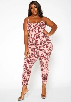 Asoph Plus Size Greek Key Print Cami Jumpsuit
