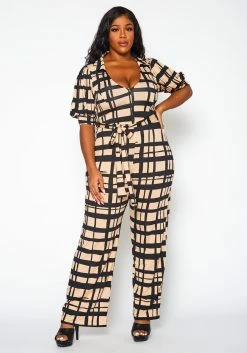 Plus Size Grid Plaid Flare Jumpsuit