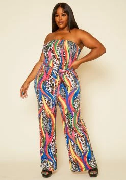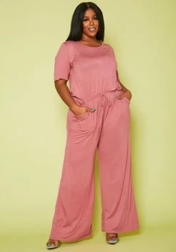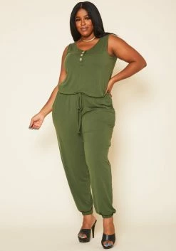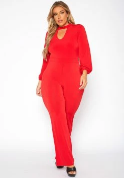 Plus Size Keyhole Front Flare Leg Jumpsuit