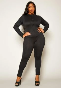 Plus Size Long Sleeve Bodycon Jumpsuit