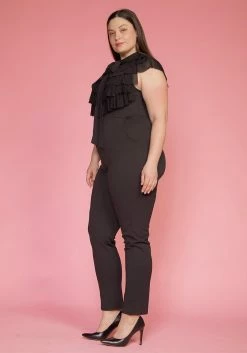 Asoph Plus Size Ruffle Tie Neck Sleeveless Jumpsuit