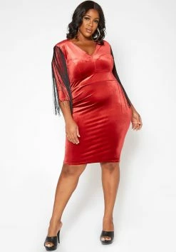 Asoph Plus Size Tassel Fringe Velvet Bodycon Mini Dress
